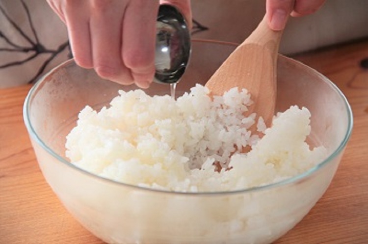 1、ごはんはあたたかくして、ごま油を適量加えて混ぜておく。