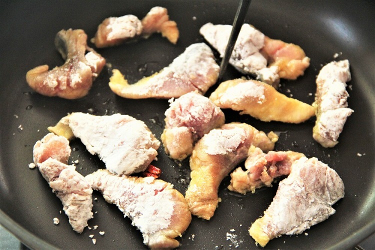 ・サバは2㎝程度のそぎ切りにし、[下味]をつけてなじませ、水気をしっかりとキッチンペーパーなどでふき取り、片栗粉をまぶしておく。