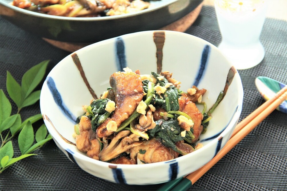 今回ご紹介するのは、「サバとホウレン草のソテー-クルミ風味-」です。「サバをアレンジした料理を作りたい」「いつもとは違った味付けにしたい」そんな方におすすめです。サバの表面をこんがりと焼き、醤油やヒバーチなどをブレンドした[B]の調味料を加えます。仕上げに刻んだクルミを加えるのもポイント。クルミは美容効果も期待でき、良質の脂肪、ビタミン、ミネラル、タンパク質や食物繊維が含まれています。そのまま食べても美味しいですし、ビールや日本酒、焼酎などのお酒ともよく合います。冷めても美味しいので、多めに作っておき、お弁当の一品に加えてもよいでしょう。ぜひ試してみてください。