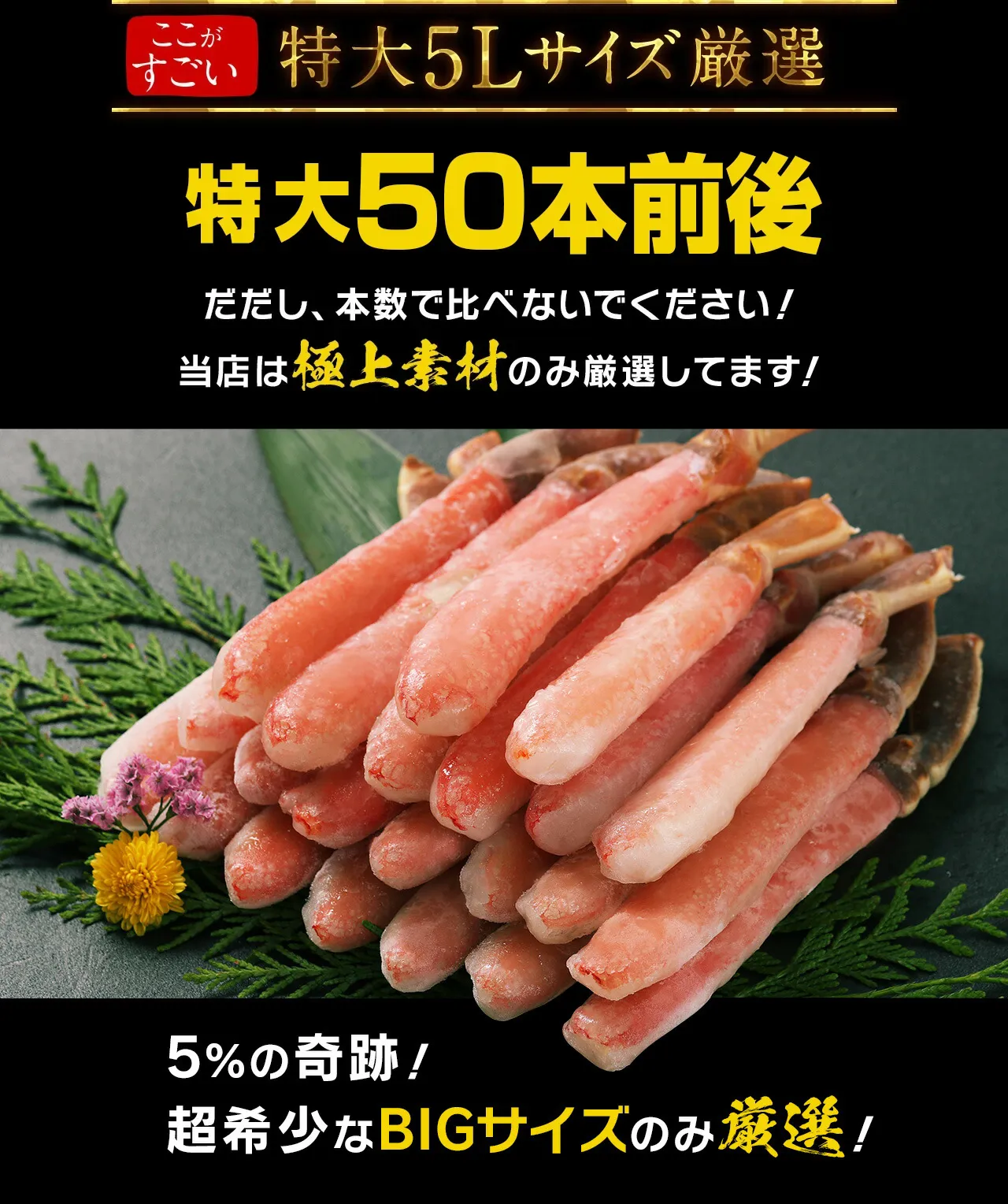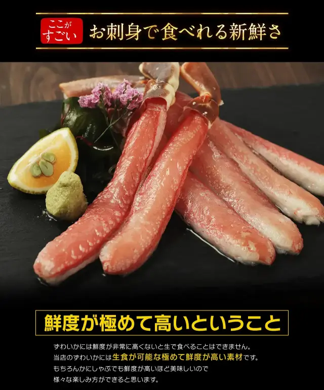 ズワイ蟹足(天然):ポーション(生/冷凍) 約50本前後