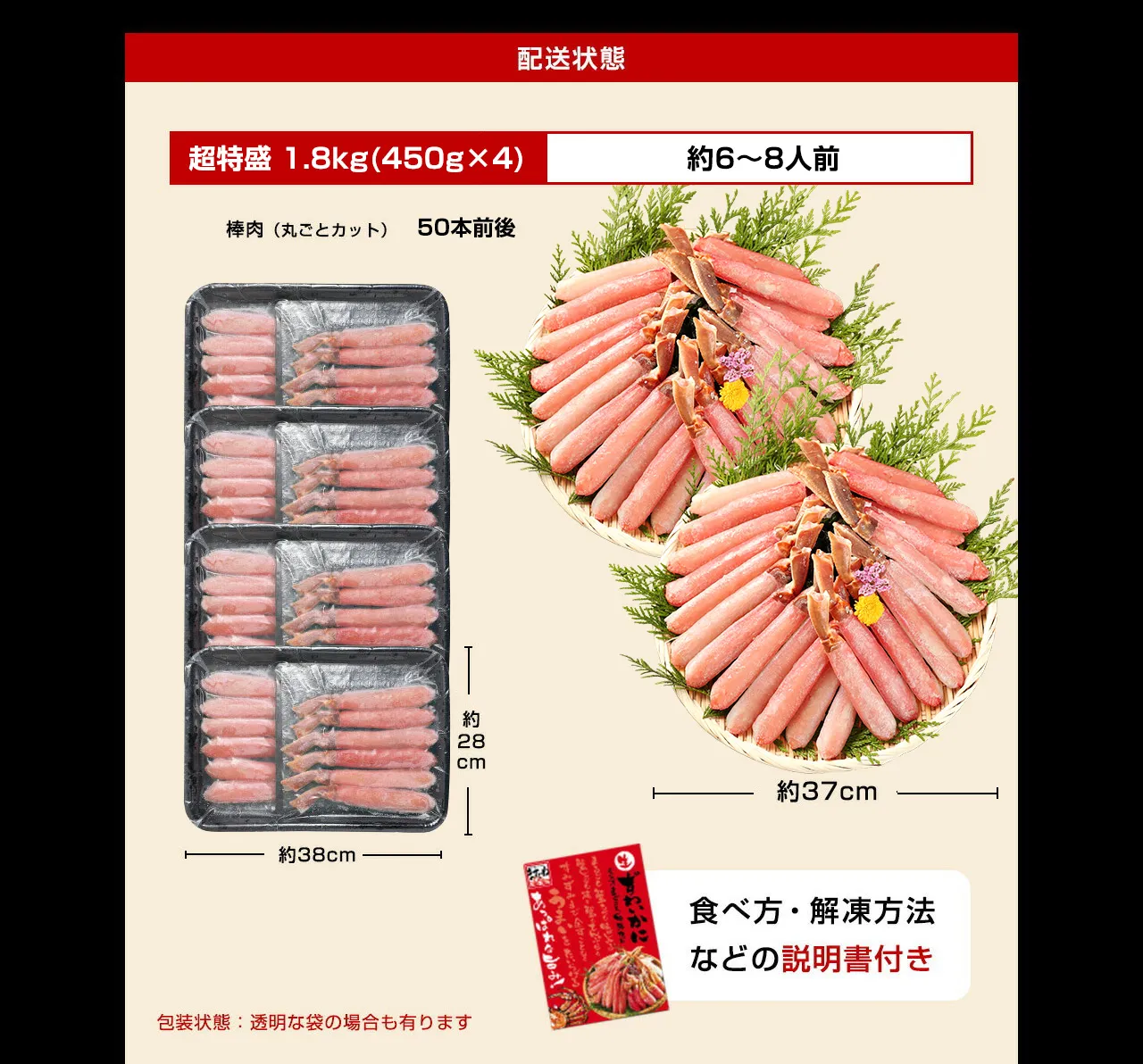 ⇒合計1.8kgセット(450g×4)(6-8人前)