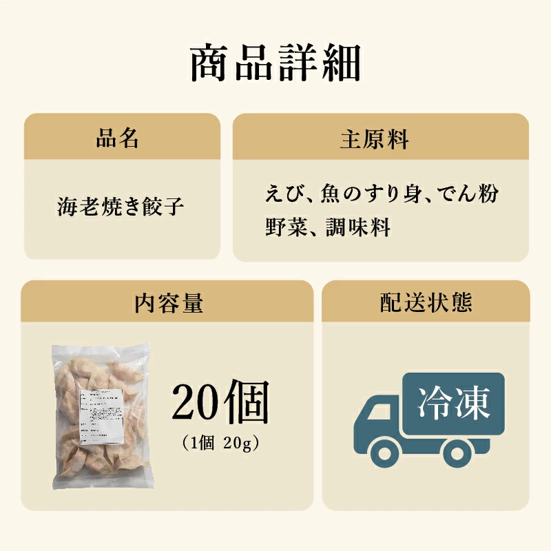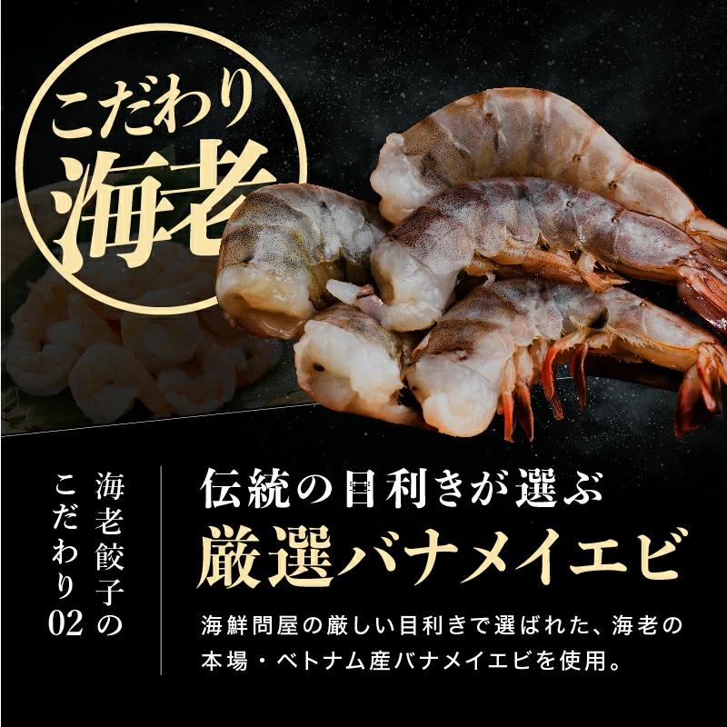 えび、プレミックス粉(小麦粉、加工澱粉、その他)、魚肉すり身(イトヨリダイ、卵白、安定剤)、加工澱粉、キャベツ、パン粉、植物油脂、ごま油(大豆、ごま)、ニンニク、オイスターソース、タピオカ澱粉、砂糖、植物繊維、アルカリ性水、調味料(アミノ酸)、白コショウ、えびパウダー、塩