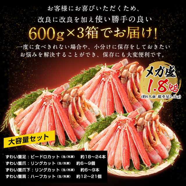ズワイカニ肩:ハーフカット(生/冷凍)約12~21個