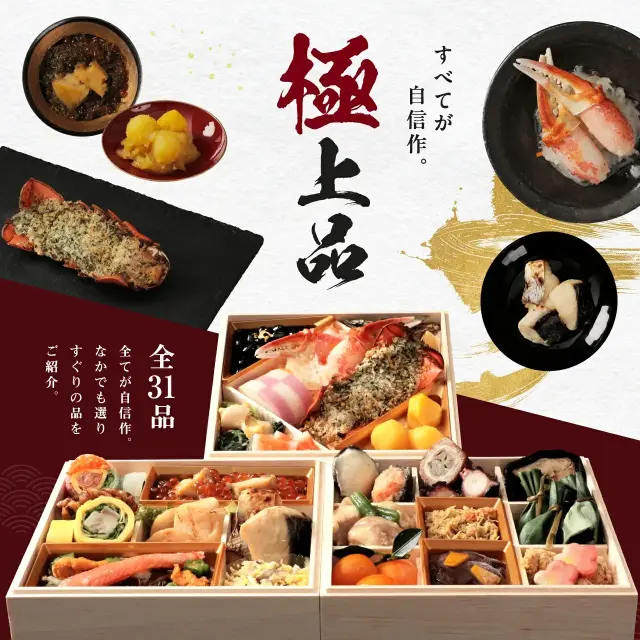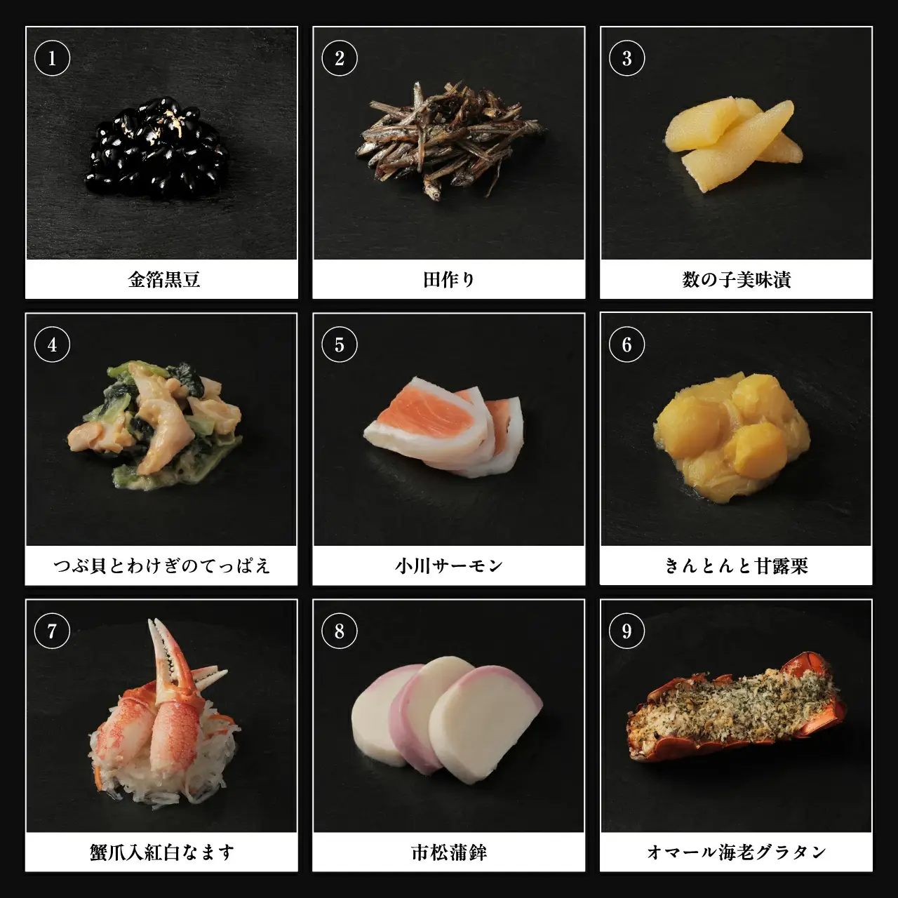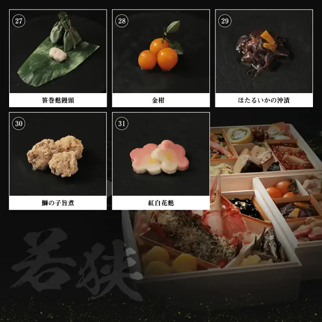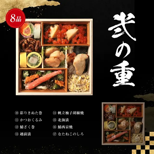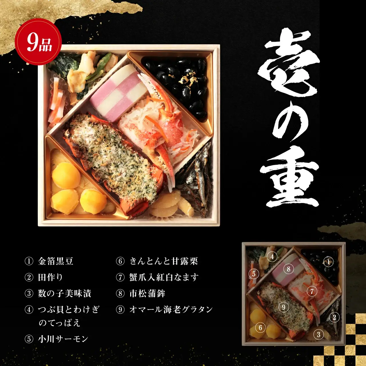 おせち×3段/お品書き・解凍方法/風呂敷/木製重箱