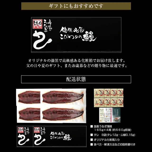 特大うなぎ蒲焼き165g前後×4本セット