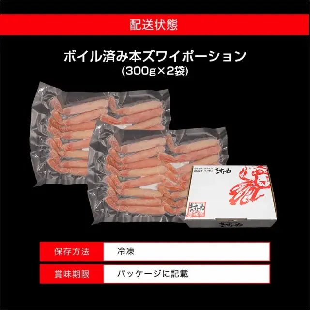 TOP商品一覧 ボイル済み本ズワイ棒ポーション 600g(300g×2P) ~ボイル済みで解凍するだけで食べれる~ 価格: ¥9,560 (税込) [ポイント還元 95ポイント~] 販売期間: ※北海道・沖縄県への配送料につきまして: 選択してください 北海道・沖縄県のみ別途980円 数量: 個 在庫: 在庫切れ 在庫 在庫切れ 返品についての詳細はこちら 4.0 (1件) 【商品内容】 ボイル済み本ずわい蟹棒ポーション 600g(300g×2P) 棒ポーション:約32本~40本 ※冷凍時の重さです。解凍後は若干目減りします。 [産地]ノルウェー、ロシア産(加工地 ベトナム、中国) 【賞味期限】 冷凍保存 (パッケージに記載/冷凍-18℃以下で保存) 家庭用冷凍庫の場合、業務用冷凍庫に比べ保存温度が高いため品質が損なわれる可能性がございます。 なるべく早めにお召し上がり下さいませ。