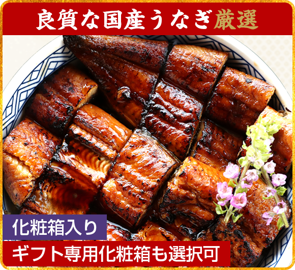 良質な国産うなぎを厳選使用し、こだわりの焼きでふっくら柔らかな食感を残したまま香ばしく焼き上げた国産うなぎ蒲焼きを2本とタレをセットにして贈答に最適なギフト専用化粧箱でお届け致します!母の日・父の日・敬老の日など大切な方への贈り物に♪